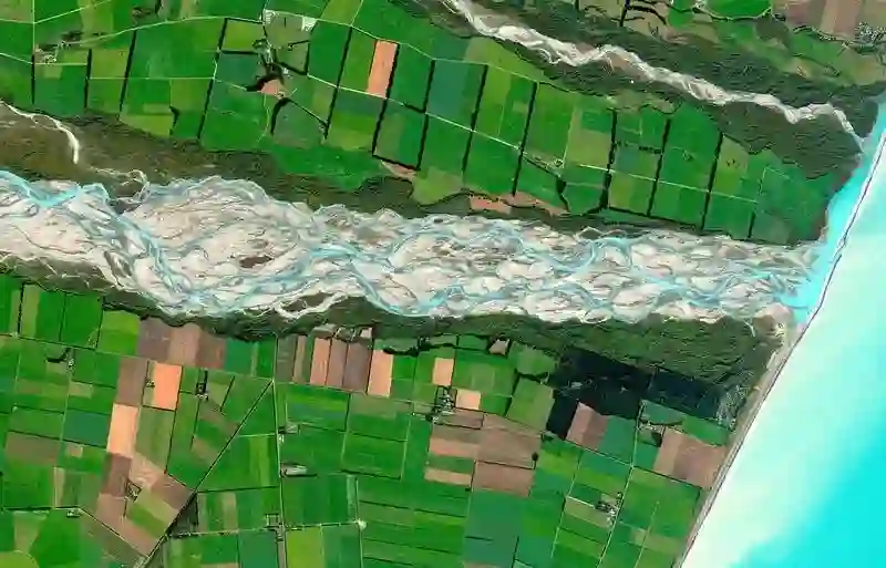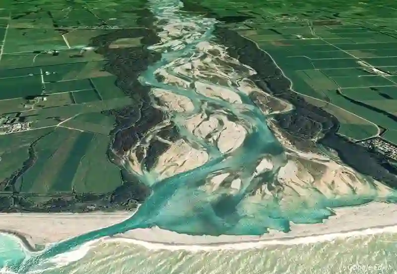上面是新西兰的怀马卡里里河(Waimakariri River)。