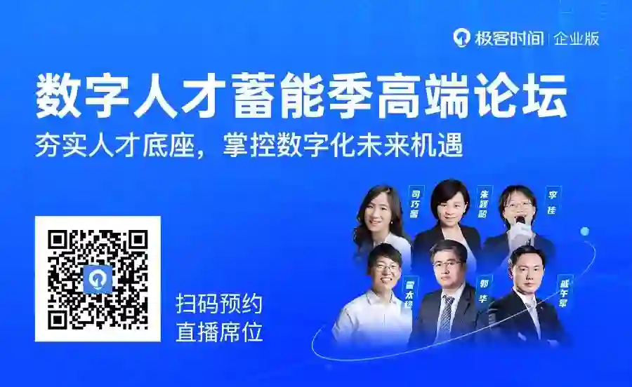 把握未来机遇,迎接 2023,前瞻布局数字前沿技术,拓展数字核心技术优势,是企业实现行业领先的重要任务。完善数字人才支撑体系,提升员工数字技能,是构筑企业硬核数字化增长引擎的保障措施。10 月 26 日,极客时间企业版举办数字人才蓄能季高端论坛,邀请数字化标杆企业的领军人物、培训和 HR 专家同台分享他们的数字人才培养经验和未来人才发展规划。