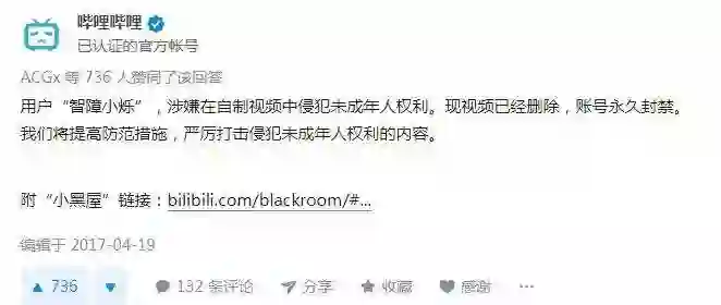 B站在12日晚发布声明回应,对UP主“科里斯”的账号进行了永久封禁。就在15日,B站又发布了新公告,宣布将启动“青少年防火墙”和“青少年权益保护中心”,开启内容分级制度,强化举报入口,通过大数据,从严过滤不良信息等。