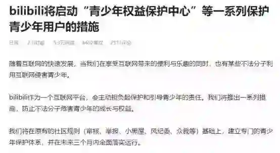 B站宣布在“科里斯”事件后,启动“青少年防火墙”计划。这当中最值得注意的是,B站提出将对于未经身份认证的用户或身份证显示为少年儿童年龄段的用户,采用专门的策略进行内容展现和社区权限设置。