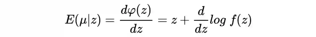 其中 是 的边缘分布。 很明显,Tweedie's formula 给出的估计中第一项就是 MLE 的估计,而第二项可以被视为经验贝叶斯在 MLE 估计的基础上做的贝叶斯修正。 我第一次看见这个结论的时候,除了 amazing 没有别的词可以形容了。这个公式意味着:在当前考虑的推断场景下,不对先验做形式上的要求,只要其存在,我们就可以求出后验分布的期望,是不是很神奇? Tweedie's formula 到底是怎么得到的呢?