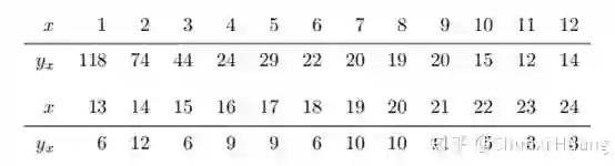 回到问题本身,the missing species problem 主要考虑的场景如下: Corbet 是一个自然学家,他曾经花了两年时间在马来西亚捕获蝴蝶物种标本。以下表格是他所收集到的部分实验数据:其中 代表的是捕获到某种类蝴蝶的次数, 所代表的是捕获次数为 的蝴蝶的种类数。