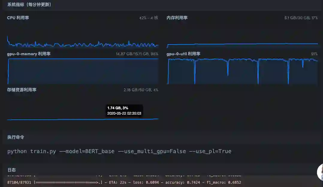 可以看到 gpu 利用率打满,芜湖,起飞~
