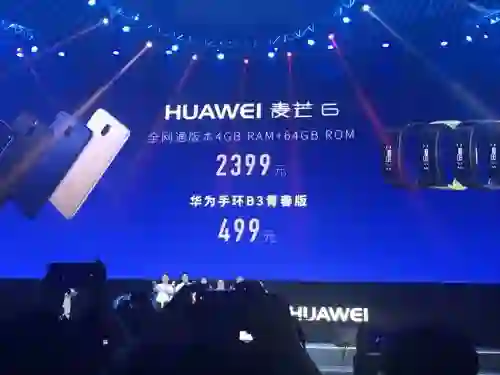 华为麦芒6提供曜石黑、流光金、极光蓝三个颜色。售价方面,官方指导价为2399元,9月22日开启预约、预售。发布会中官方还带来了华为手环B3青春版,该手环兼具蓝牙耳机功能,售价499元。