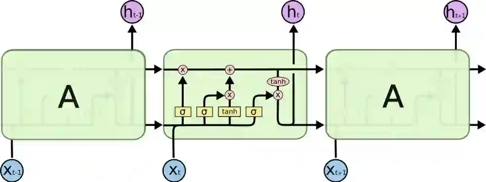 LSTM 中的顺序处理,来自http://colah.github.io/posts/2015-08-Understanding-LSTMs/。