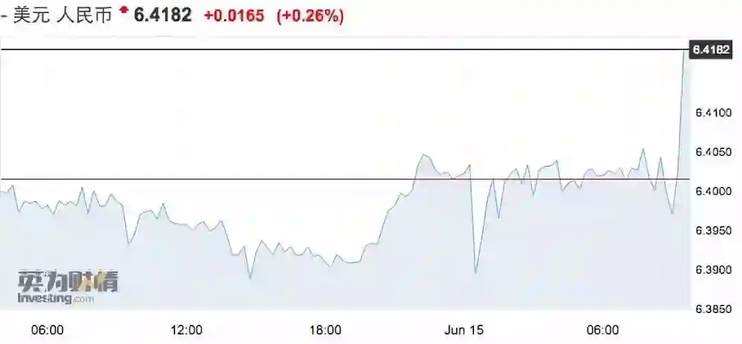 人民币资产可谓是今年新兴市场中的“避风港”。不过受到隔夜欧元暴跌、美元大涨的冲击,6月15日,人民币中间价下调344点报6.4306,为逾四个月最大降幅。不过,市场情绪仍然较为稳定,截至同日9:50,美元/人民币报6.4182。
