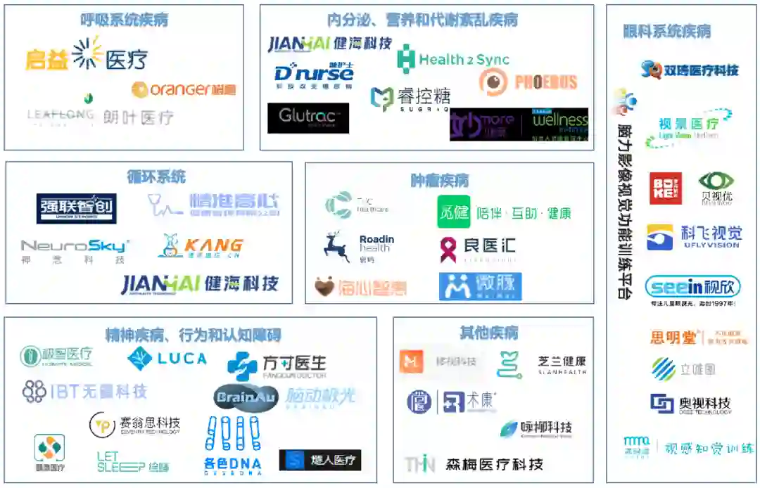 目前国内已有80多家公司开展了数字疗法的业务,包含眼科、精神障碍、行为和认知障碍、慢性呼吸、肿瘤等疾病范围。