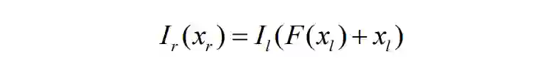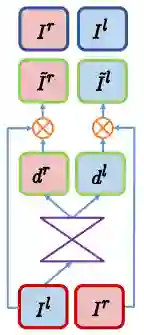 通过公式(2)可知,只需要将 图1左 作为训练输入,图1右 作为参考,即可建立深度学习模型,通过大量双目图片对训练估计出函数𝐹。这样就可在已知相机参数 (𝑏,𝑓) 的前提下获取对应的深度值𝑧,完成单目深度估计的任务。