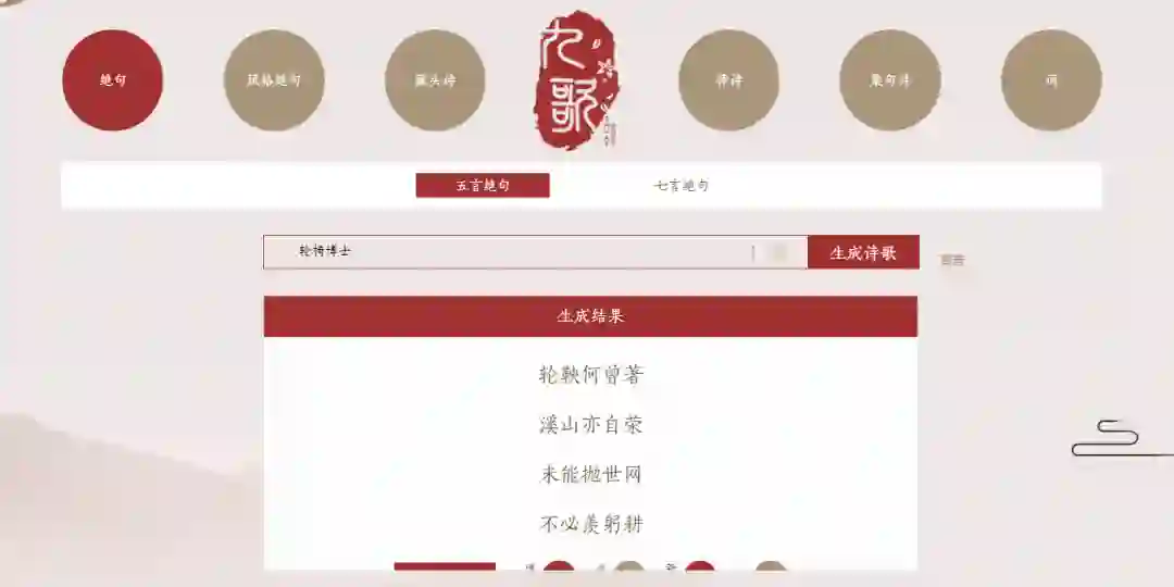 九歌结合多个专为诗歌生成设计的模型,基于 80 余万首古人诗歌进行训练,同时九歌也支持多模态输入、多风格多体裁诗歌生成以及人机交互创作等功能。