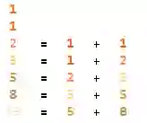 一开始的题目“1, 1, 2, 3, 5, 8, 13, ... ”是斐波那契数列。1, 1 后面的数字是将前两个数字相加,所得的和成为接下来的数字。