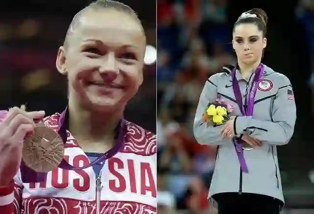 2012年伦敦奥运会,俄罗斯选手马里亚·帕塞卡(Maria Paseka,左)夺得女子跳马铜牌,满心欢喜;美国选手麦凯拉·马罗尼(McKayla Maroney,右)夺得银牌,却因满脸不爽而被称为“伦敦不爽姐”。在领奖台上,她们各自在想着什么? | 左:oregonlive.com;右:pinterest.com