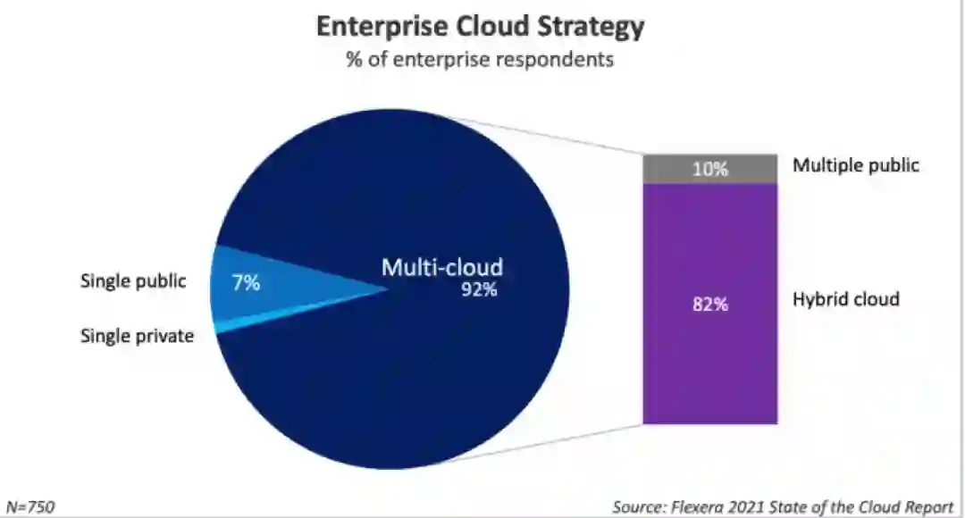 92%的企业正在采用多云战略,受访者平均使用2.6朵公有云