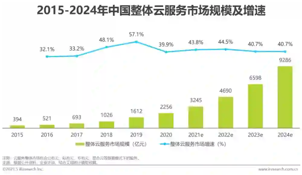但与此同时,《报告》对于云服务市场规模和增速有着大胆的预测:预计在2024年,中国云服务市场规模将有望达到9286亿。