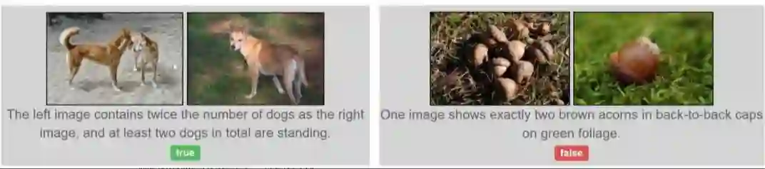 NLVR(Natural Language for Visual Reasoning)任务中,需要同时输入两张 Image 和一个描述,输出是描述与 Image 的对应关系是否一致,label 只有两种(true/false)。