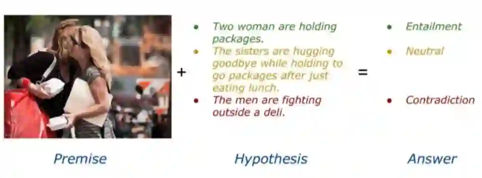 在 Visual Entailment 中,Image 是前提,Text 是假设,模型的目标是预测 Text 是不是“Entailment Image”,一共有三中 label,分别是 Entailment、Neutral 和 Contradiction。