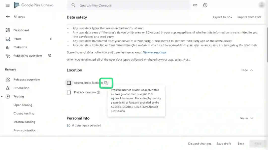 另外,请确保与应用的隐私政策保持一致。例如,如果您的隐私政策披露了位置信息的使用,请确保您在数据安全表单中也做了相应的声明。