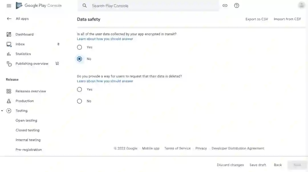 在 2022 年 7 月 20 日政策合规期限之前,如果您的数据安全表单存在任何问题,您可能需要在 Play 管理中心内将数据安全表单的状态还原为 "草稿",再继续发布应用更新。