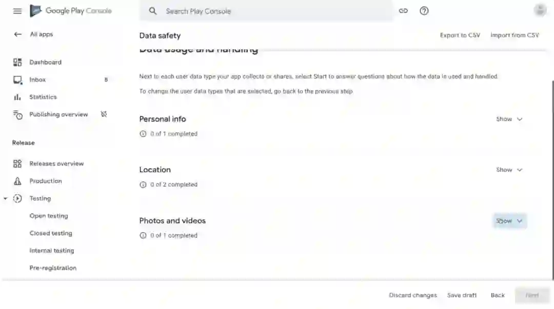 https://support.google.com/googleplay/android-developer/answer/10787469?hl=zh-Hans#:~:text=导入或导出您填写的表单
