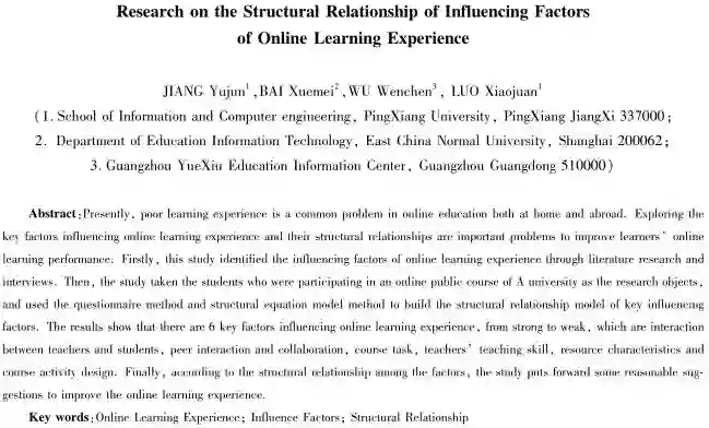 关键词:在线学习体验;影响因素;结构关系