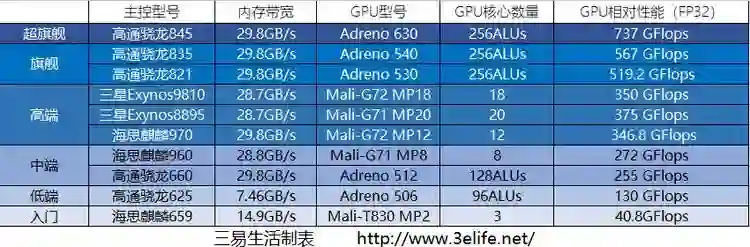 同样的道理,在手游领域就更好理解了:我们整理了时下几款流行手机主控的GPU规格列表,按照其3D游戏相对性能从高到低的顺序排列。从这张表中,大家可以一目了然地看出,从最顶级的超旗舰、到最入门的低端主控,3D性能之间的差距远比一般人想象的要大得多。最夸张的情况下,前者的3D性能有后者的18倍还多一点。