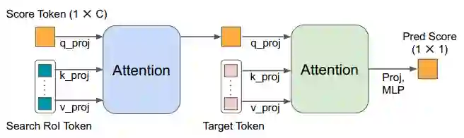 动态更新的 template 通常在获取时序信息和保持跟踪鲁棒上十分重要,尤其在目标发生变形等情况时,然而不正确的目标选取会使得跟踪结果更加糟糕。我们提出了一个 Score Prediction Module (SPM),根据预测得分来选取可靠的 online template。结构如图所示,具体细节可以参照论文。