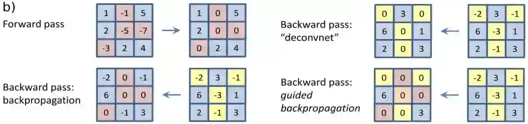 实质上,在引导反向传播(Guided backproagation)中,对目标类的预测值没有影响或有负面影响的神经元被屏蔽并忽略。通过这样做,我们可以防止梯度通过这样的神经元,从而减少噪音。