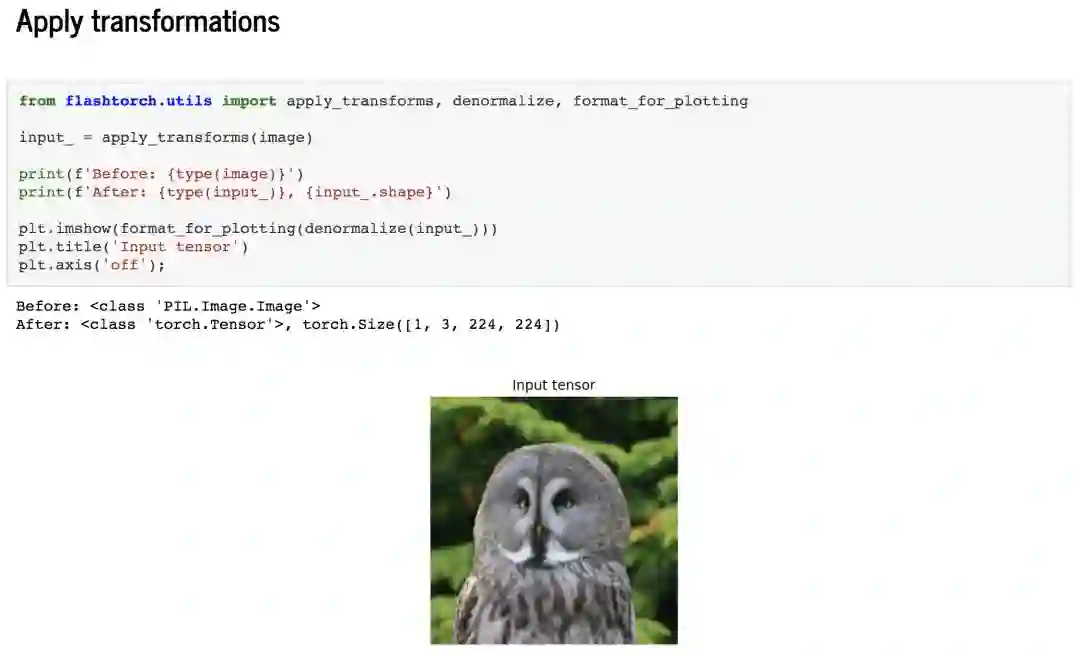 该软件包可通过pip安装。Github仓库链接(https://github.com/MisaOgura/flashtorch)。你也可以在Google Colab上运行(https://colab.research.google.com/github/MisaOgura/flashtorch/blob/master/examples/visualise_saliency_with_backprop_colab.ipynb),从而无需安装任何东西!