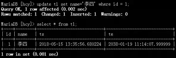 SELECT * FROM t1 FOR SYSTEM_TIME FROM '2018-05-15 00:00:00' TO '2018-05-15 14:00:00';