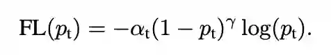 针对 OHEM 算法中忽略易分样本的问题,本文提出了一种新的损失函数 Focal Loss(发表于 2017 ICCV),它是在标准交叉熵损失基础上修改得到的。这个损失函数可以通过减少易分类样本的权重,使得模型在训练时更专注于难分类的样本。