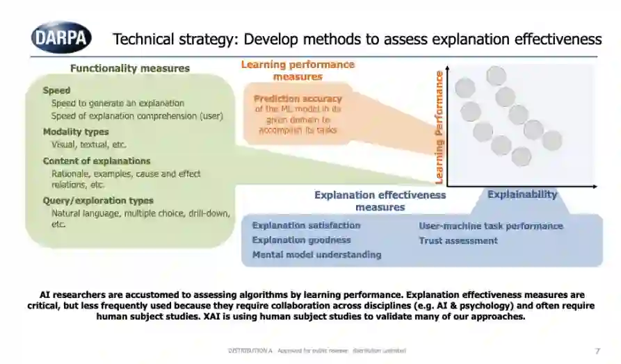 XAI 计划假设机器学习性能(例如,预测准确性)和可解释性之间存在固有矛盾关系,这一问题与当时的研究结果一致。通常性能最高的方法(例如深度学习)是最难解释的,而最可解释的(例如决策树)是最不准确的。该计划希望创建一系列新的机器学习和解释技术,为未来的从业者提供更广泛的设计选项,涵盖性能-可解释性交易空间。如果应用程序需要更高的性能,XAI 产品组合将包括更可解释、高性能的深度学习技术。如果应用系统需要更多的可解释性,XAI 将包括性能更高、可解释的模型。