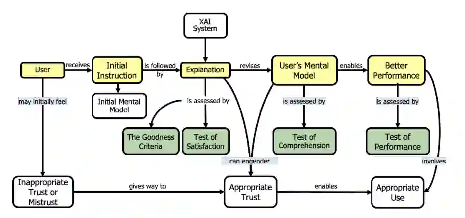 该计划需要对解释有扎实的心理学理论支持。选择了一个团队来总结当前的解释的心理学理论,以协助 XAI 开发人员和评估团队。这项工作始于对解释心理学的广泛文献调查以及之前关于 AI 可解释性的工作(IHMC 文献调查的参考资料)。最初,该团队被要求(1)对当前的解释理论进行总结,(2)根据这些理论开发一个解释的计算模型;(3) 根据 XAI 开发人员的评估结果验证计算模型。开发计算模型被证明是一座太极端的桥梁,但该团队确实对该领域有深入的了解并成功地制作了描述性模型。这些描述性模型对于支持有效的评估方法至关重要,这些评估方法涉及精心设计的用户研究,按照美国防部人体研究指南进行。图4说明了 XAI 解释过程的顶级描述模型。