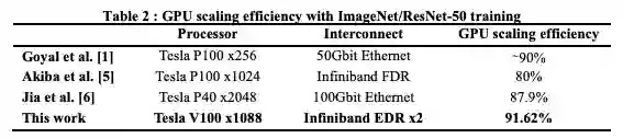表2:ImageNet/ResNet-50训练的GPU scaling 效率
