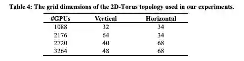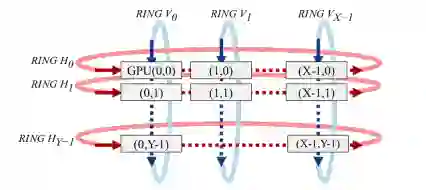 具体而言,2D-Torus all-reduce将GPU排列在一个逻辑2D网格中,并以不同的方向执行一系列操作。