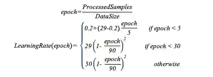 在这项工作中,我们采用 Batch Size Control来减少精度下降, batch size超过了32K。在训练期间采用了预定的batch-size来更改调度。