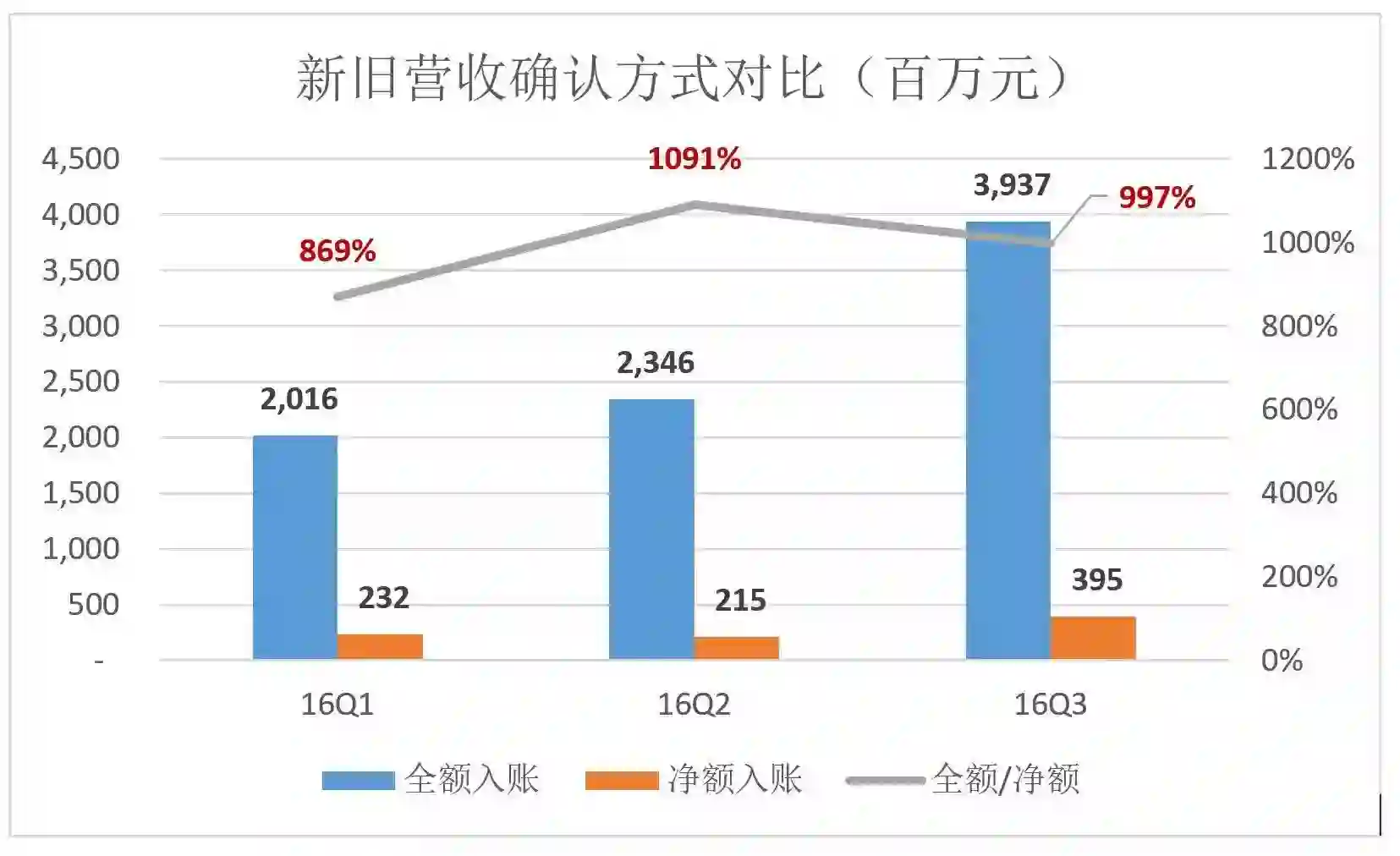 采用“非通用会计准则”好比脚下“垫砖”。2016年Q3“垫砖”后仍亏4.97亿,头顶距水面足有两三米。2017年Q3“垫砖”后盈利3966万,口鼻已能露出水面,进步着实惊人。