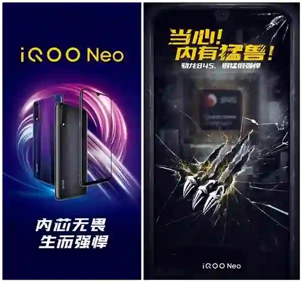 6 月 20 日消息,iQOO 官方微博揭晓了 iQOO Neo 的细节:搭载骁龙 845 移动平台。除了骁龙 845 处理器,从 19 日的海报中我们还可以看出 iQOO Neo 还采用了水滴屏设计,后置纵向排列的三颗摄像头,或支持屏幕指纹识别。