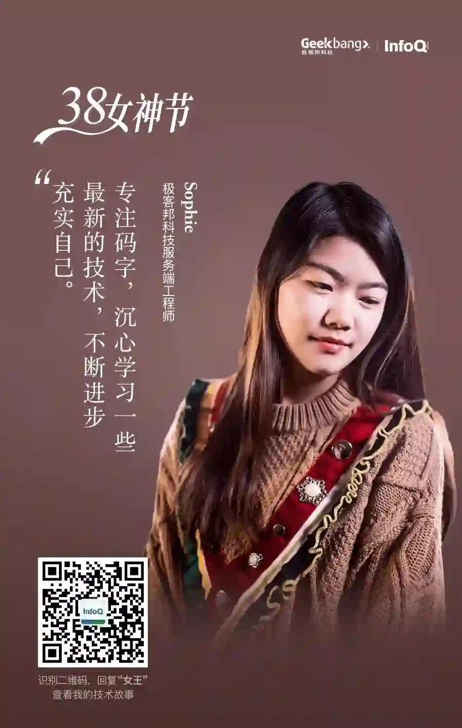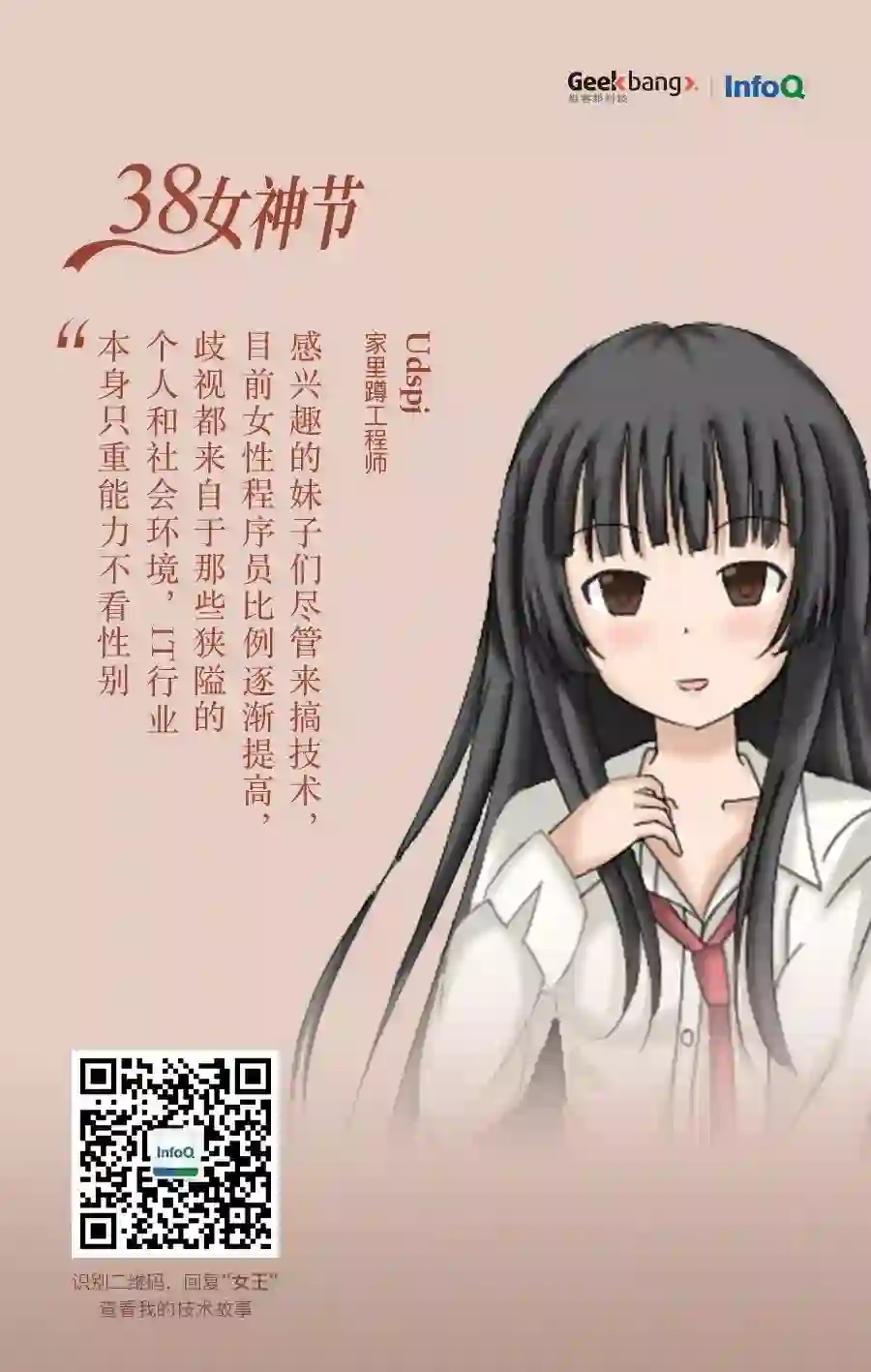 在这个特别的节日里,InfoQ 想向大家介绍一些比较具有代表性的程序媛们:她们有的已经身居高职,但你要知道,任何一个有头衔的程序员背后都少不了其他程序员的支持,无论男女;她们有的,只是普普通通的一线开发,对技术的热爱却不输任何人;她们还有的,像爱好代码一样,爱好着二次元,是真正意义上的女装大佬。这么多程序媛小姐姐,想带大家一起了解一下!