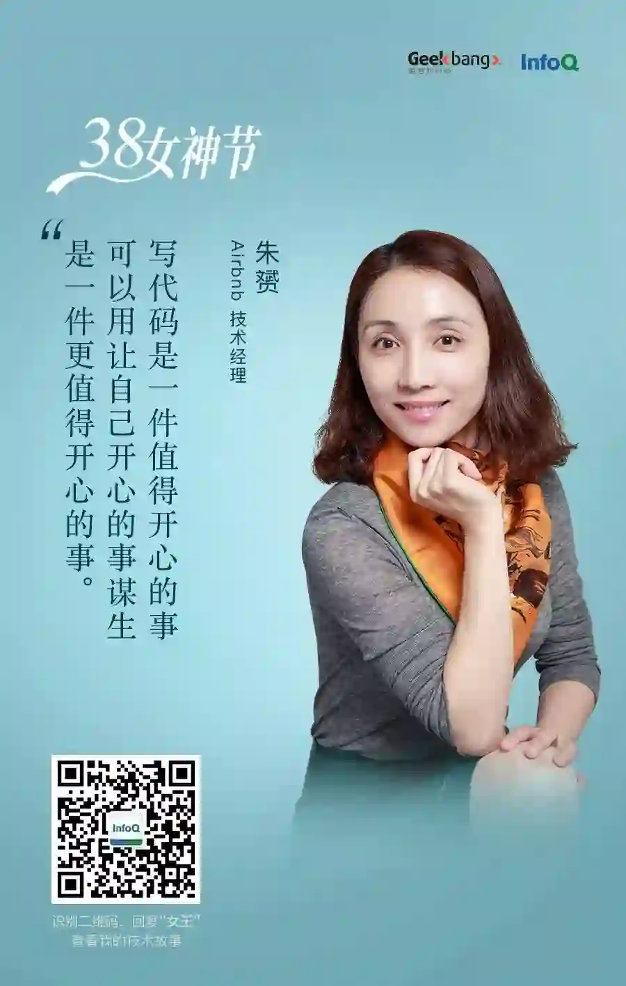 作为一名女性技术管理者,Angela 一直在努力地为行业输出着一些东西。除了她运营的嘀嗒嘀嗒公众号,她还在极客时间专栏分享了一本即学即用的程序媛成长指南——《朱赟的技术管理课》。来自 Airbnb 的朱赟博士为你倾情讲解技术管理、技术实践、硅谷文化和个人成长四大领域内容,跟随学霸女神的成长轨迹,技术之路与导引者一起前行,让你的目标函数直达最优。