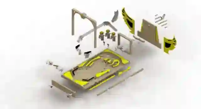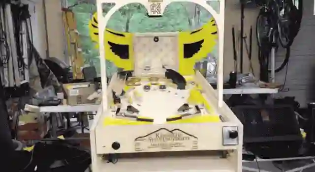 弹球机的设计由两个主要的子部分组成,运动场和支架。球场是标准尺寸——20.25 x42英寸2,由3/4英寸厚度的波罗的海桦木胶合板制成。