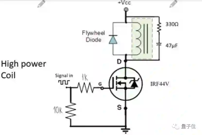 因为电感不能瞬间改变电流,这就带来了一个问题。工作时,线圈会通过很高电流,而关闭时,如果没有一个地方分散电流,可能会破坏元件,非常危险。