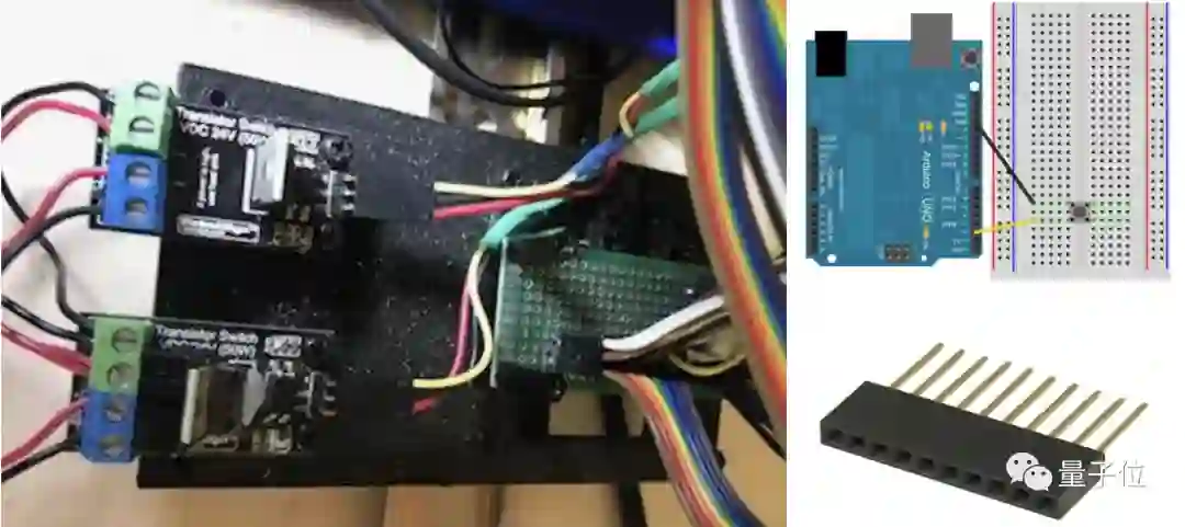 这个项目中使用了标准针脚连接,可以很容易地将所有的东西同时插入到Arduino中。