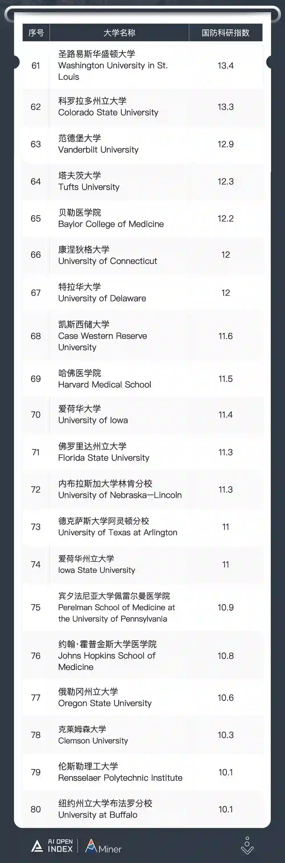 展示了 200 多所美国高校的国防科研实力,以及 15 家与美国国防科研参与度很高的资助机构。