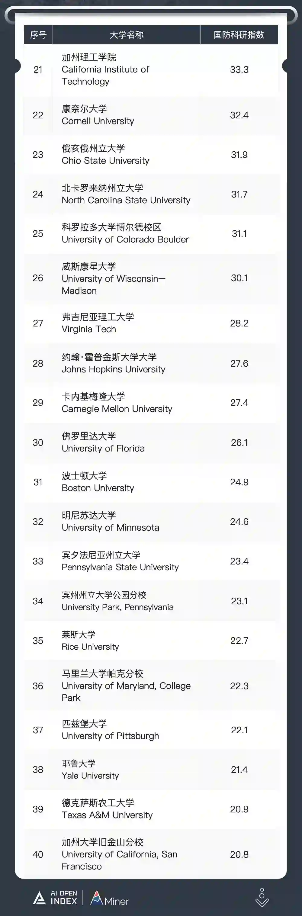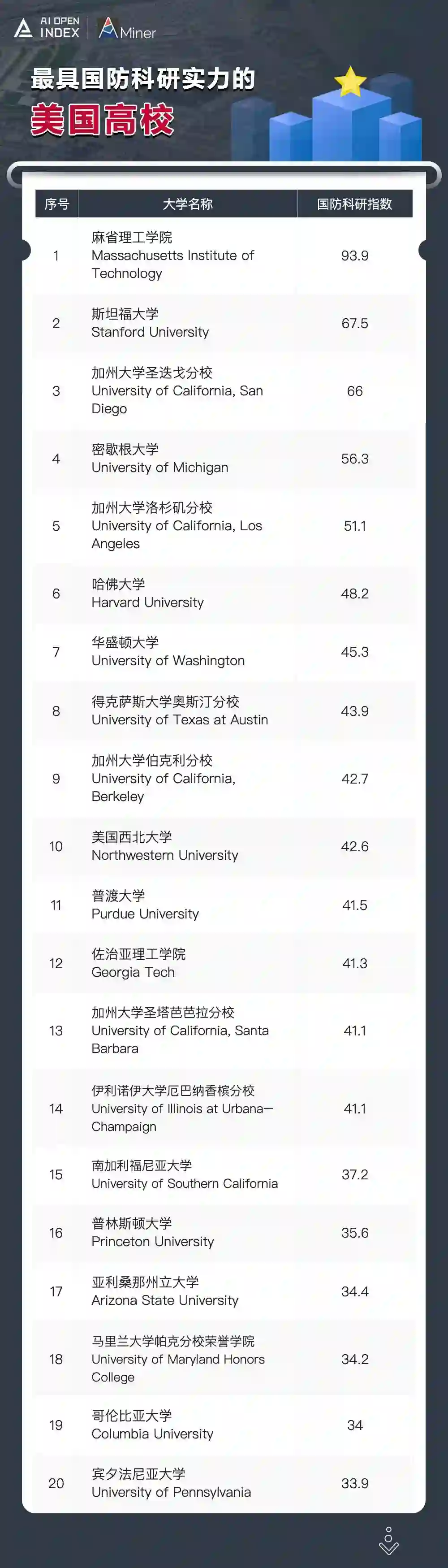 根据美国国防部科技信息中心公开的论文数据,美国国防部公开资助数据,此次推出的美国国防科研追踪系统,向大家展示“最具国防科研实力的美国高校”。通过
