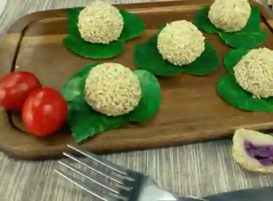 风味:外面裹着的薄薄糖衣加了香浓的芝麻粉,吃着香甜爽口,里面的炸元宵又是另一层酥脆口感,加上最里面的软糯融合着甜蜜夹心,三重口感,好吃到飞起,冷食、热食皆宜。