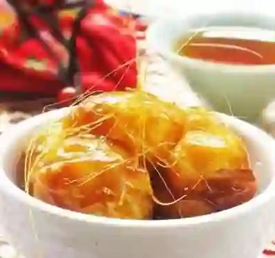风味:有着炸元宵的口感而无油腻感,配上坚果白糖之类的小料,或者桂花酱、玫瑰酱等,风味更佳。