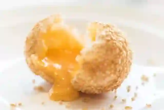 裹上芝麻的流沙馅儿炸元宵。图片来自123rf.com.cn正版图片库