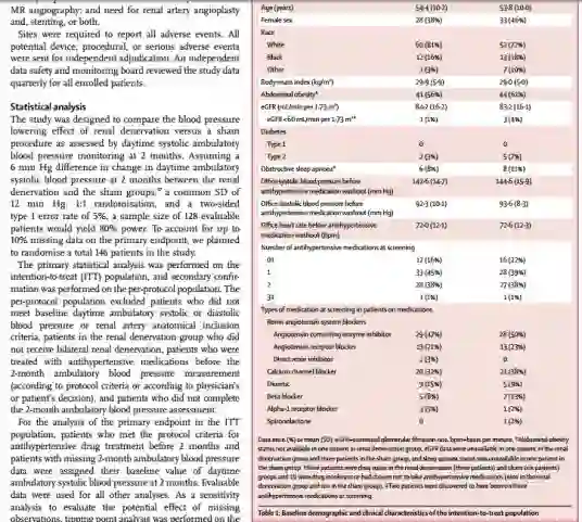 最后,这项研究存在一定的局限性,比如只进行了为时两个月的短期随访时间。我们这样做是出于对高血压病人的安全考虑,尽量减少实施“假手术”组的高血压患者停用降压药物的时间。