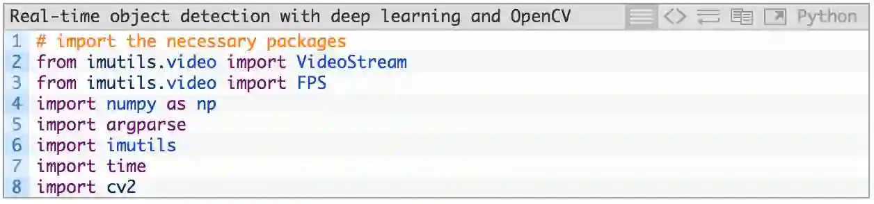 我们从第 2-8 行开始导入封包。在此之前,你需要 imutils 和 OpenCV 3.3。在系统设置上,你只需要以默认设置安装 OpenCV 即可(同时确保你遵循了所有 Python 虚拟环境命令)。