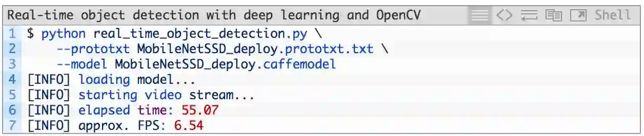 现在,我们将开始把深度学习+目标检测的代码应用于视频流中,同时测量 FPS 处理速度。