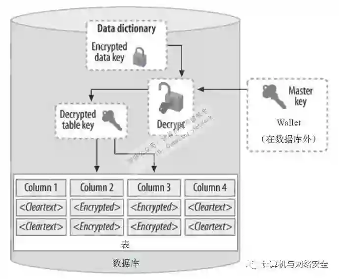 TDE可对数据和日志文件执行实时I/O加密和解密,这种加密使用数据库加密密钥(DEK),该密钥存储在数据库引导记录中以供恢复时使用。DEK是使用存储在服务器的master数据库中的证书保护的对称密钥,或者是由EKM(扩展密钥管理模块)保护的非对称密钥。TDE保护对象为静态数据(相对于内存中的热数据而言),即数据和日志文件。开发人员可以使用AES和3DES加密算法来加密数据,且无需更改现有的应用程序。